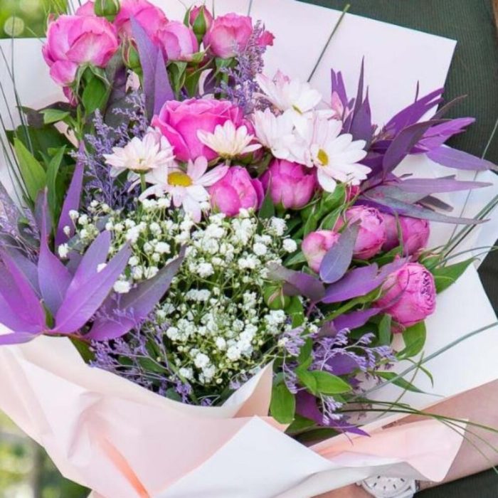 Гипсофила – 2 шт. Хризантема кустовая – 3 шт. Эвкалипт – 3 шт. Кустовая роза – 3 шт. Сухоцветы – 2 шт.