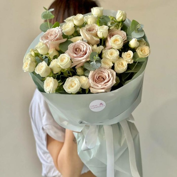 Гвоздики, Кустовые розы, Пионовидные розы, Розы