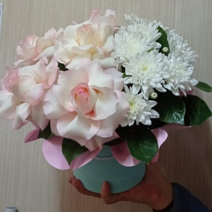 “В твоих глазах”: нежная шляпная коробка с французскими розами