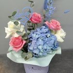 “Атлас☁️” – цветочная композиция с зефиром в деревянном ящике