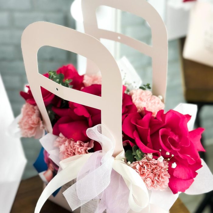 Гипсофила – 1 шт.Тишью – 1 шт.Диантус – 5 шт.Плайм пакет – 1 шт.Роза Pink Floyd – 3 шт.Открыточка с вашими пожеланиями – 1 шт.Оазис флористический – 1 шт.Эвкалипт Baby Blue – 1 шт.подкормка для срезанных цветов – 1 шт.инструкция по уходу за цветами – 1 шт.