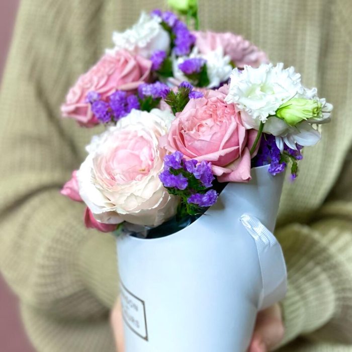Цветы в коробке с пионовидной розой