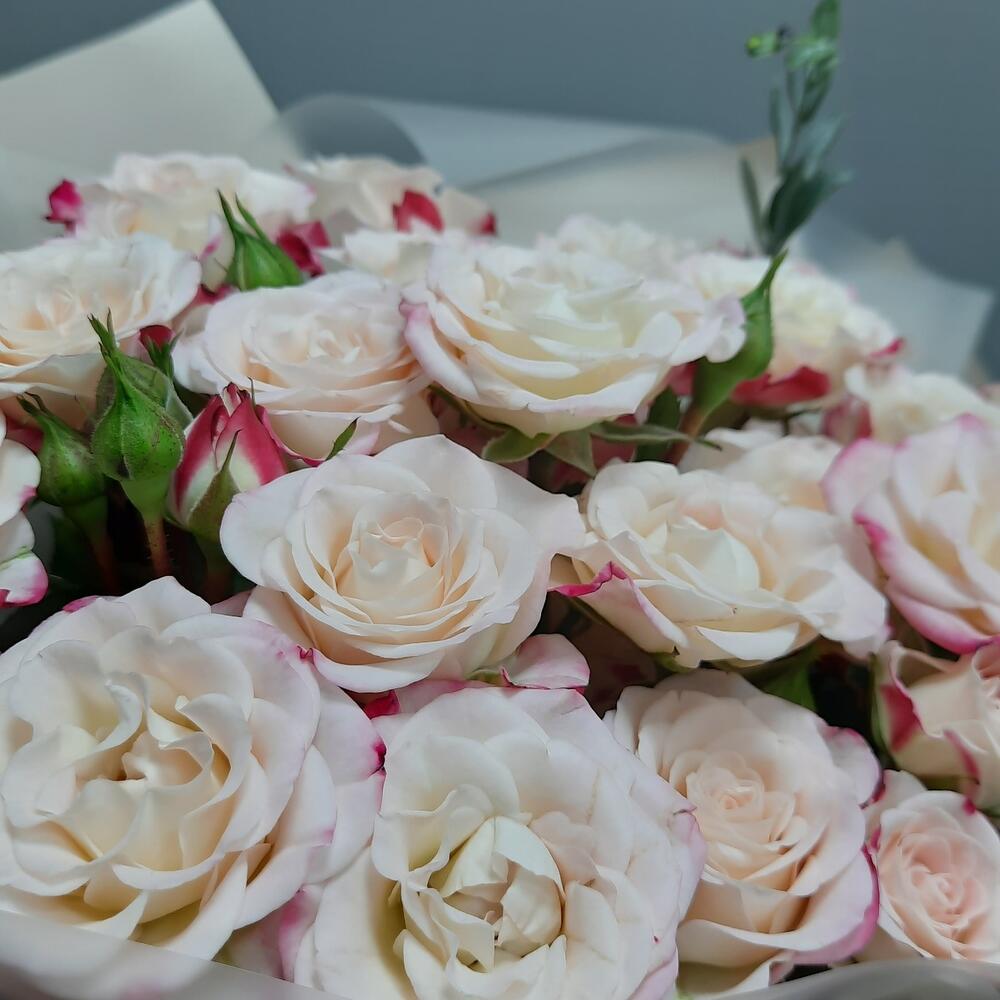 Роза кустовая – 7 шт.Эвкалипт – 2 шт.Упаковка дизайнерская – 2 шт.