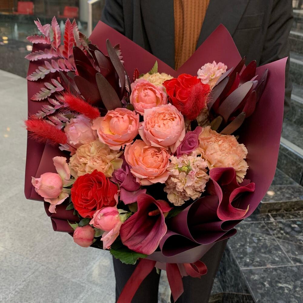 Категорий: Гвоздики, Каллы, Пионовидные розы, Розы, Сухоцвет