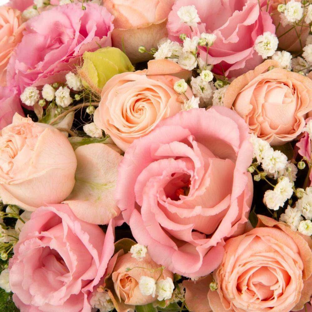 Альстромерии, Кустовые розы, Лизиантусы, Пионовидные розы, Розы, Ромашки
