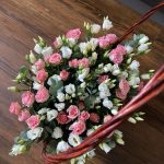 Лизиантус – 10 шт.Роза кустовая – 15 шт.Эвкалипт – 7 шт.Корзина плетеная – 1 шт.Оазис флористический – 1 шт.
