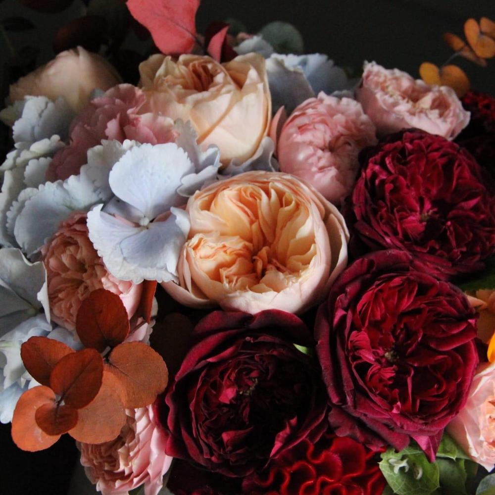 “Эвкалиптическая роскошь” гортензия и пионовидная кустовая роза