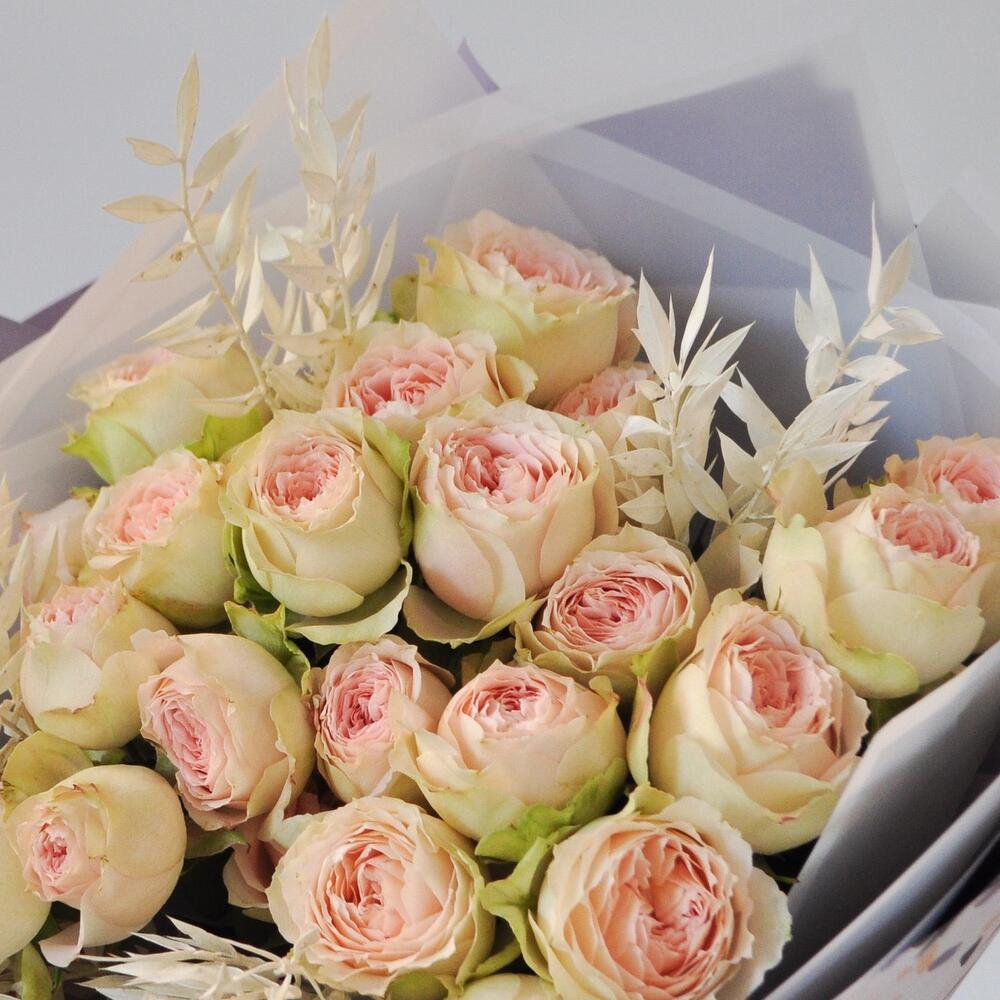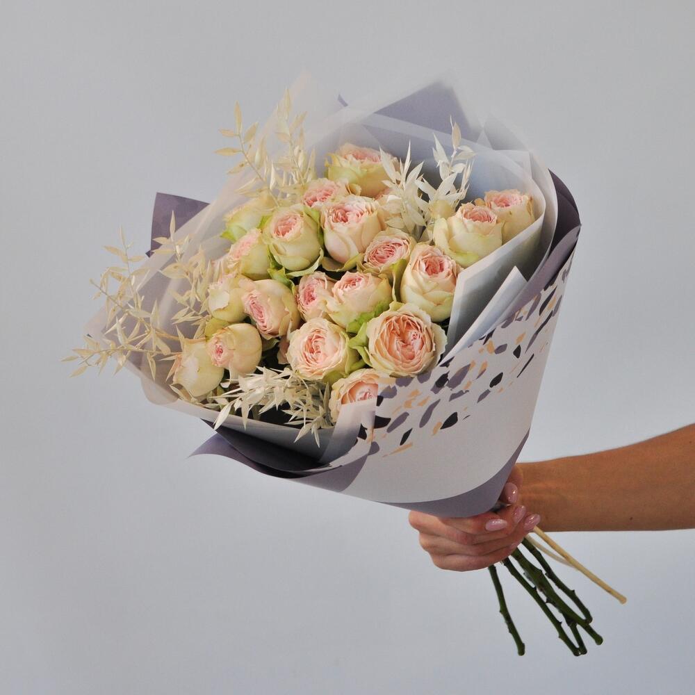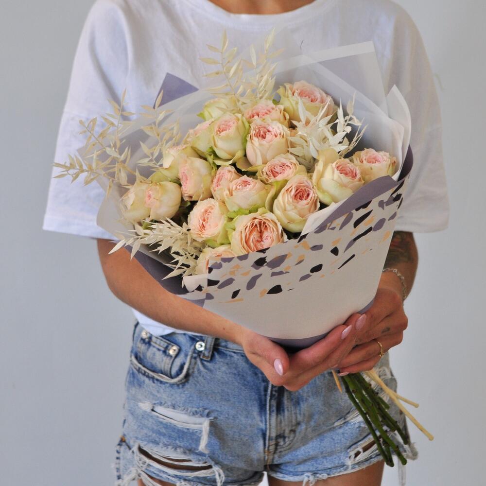 Кустовая пионовидная роза в букете