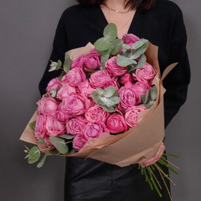 Эвкалипт – 2 шт.Упаковка – 1 шт.Аквапак – 1 шт.питательная смесь для срезанных цветов – 2 шт.роза кустовая артезия – 11 шт.