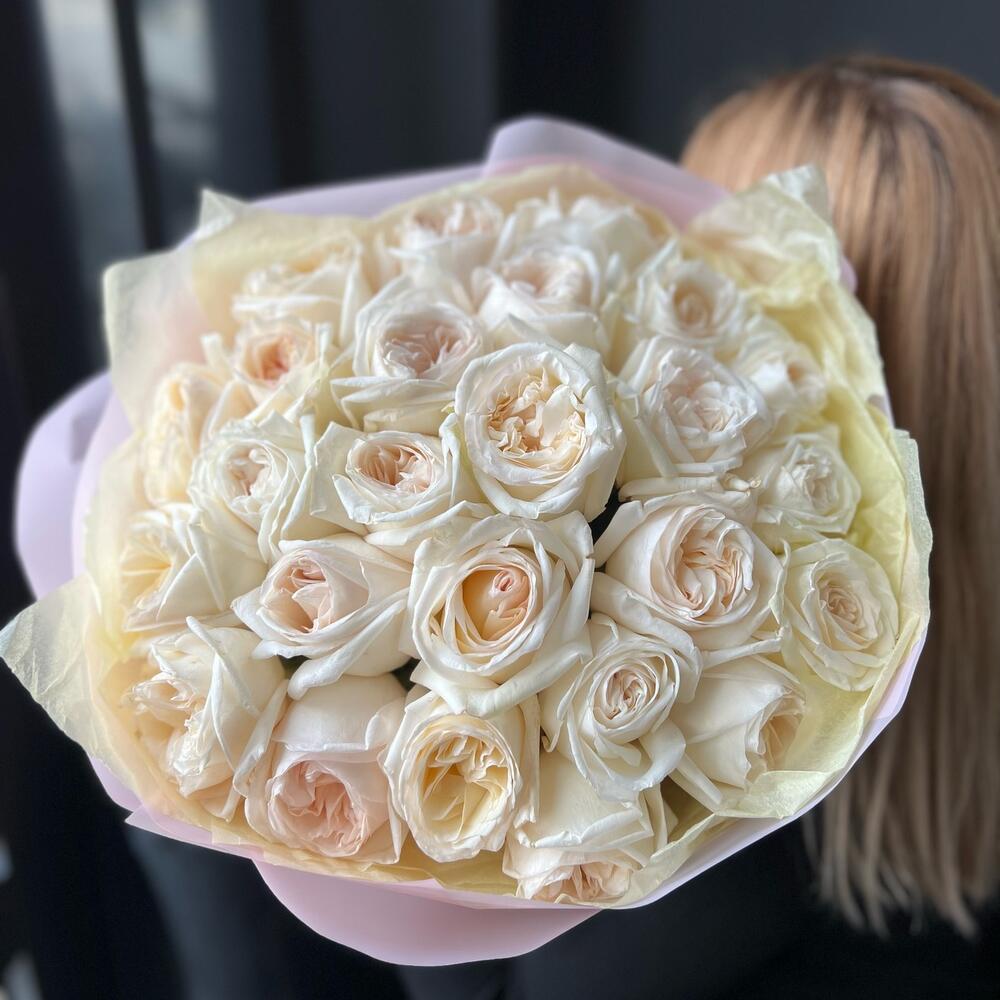 Моно букет из 25 ароматных, пионовидных роз