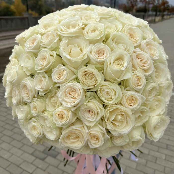 Метки: 101 роза, Белые розы, от 5000 руб, Роза 70 см