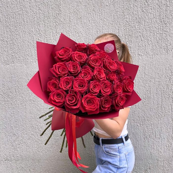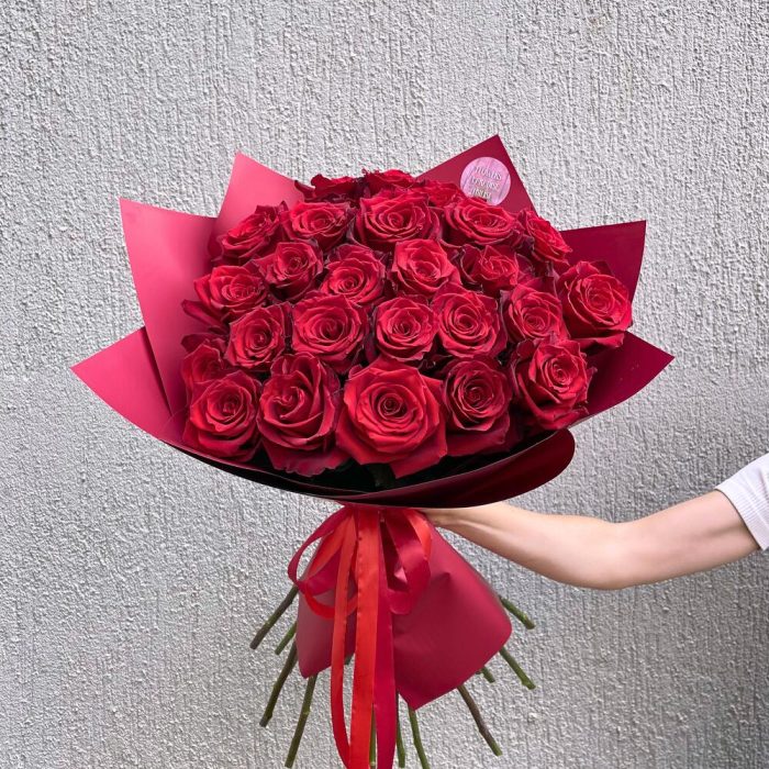 Метки: 25 роз, от 5000 руб, Роза 70 см