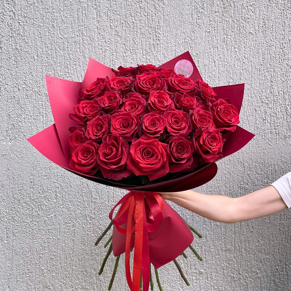 роза (голандия) – 25 шт. Упаковка – 1 шт. Лента атласная – 1 шт.