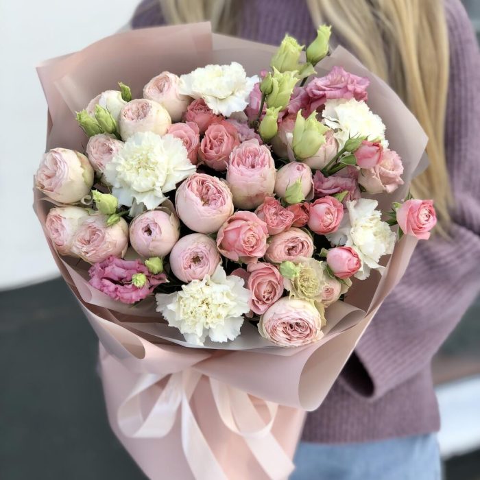 Альстромерии, Кустовые розы, Лизиантусы, Пионовидные розы, Розы, Ромашки