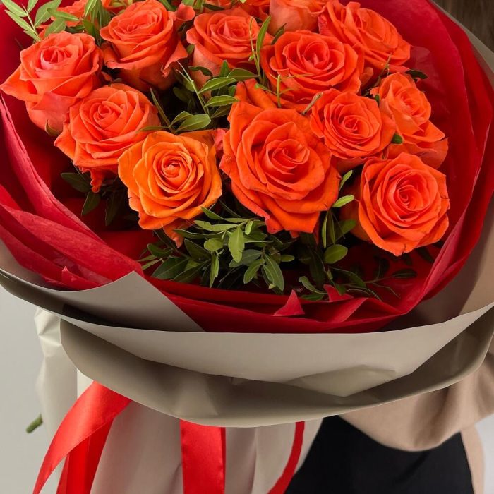 Оранжевое солнце - Букет с пионовидными розами и колючками