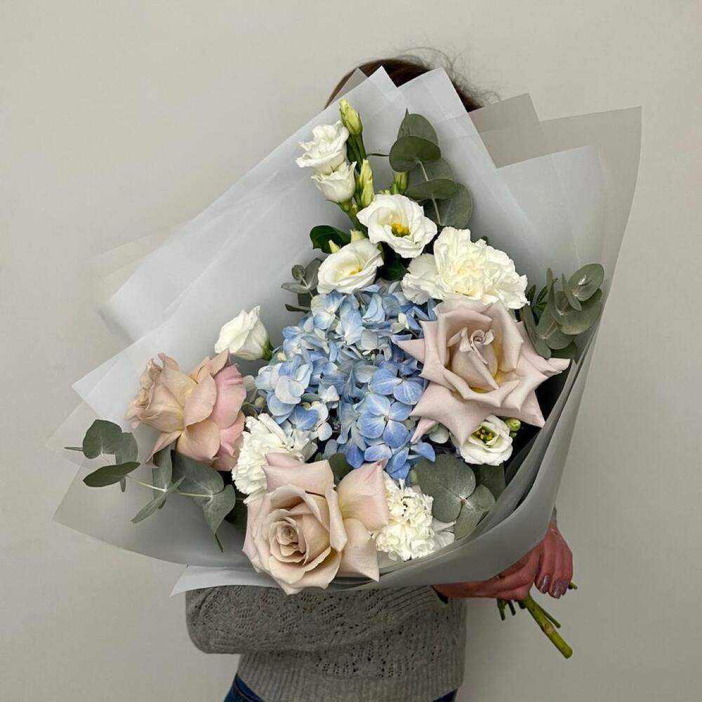Гвоздики, Кустовые розы, Лизиантусы, Пионовидные розы, Розы