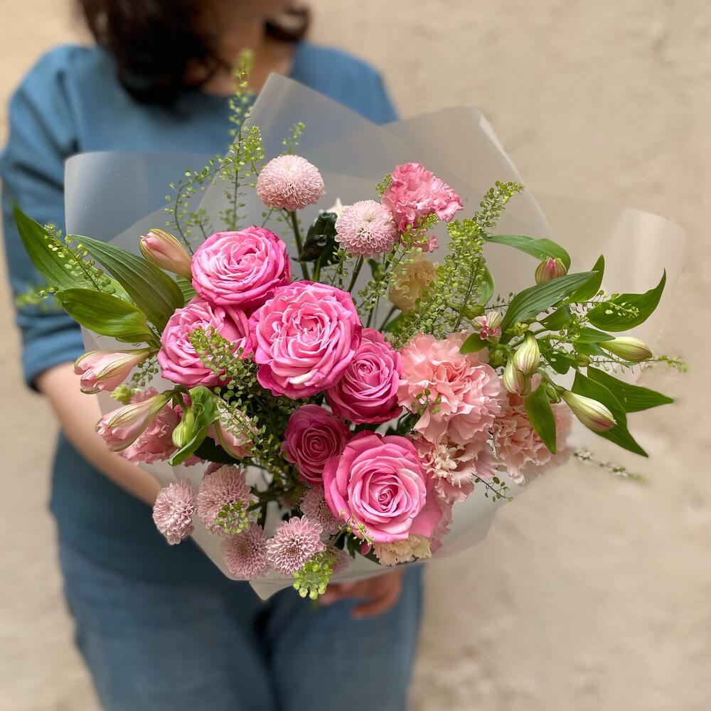 Категорий: Альстромерии, Гвоздики, Кустовые розы, Лизиантусы, Розы, Хризантемы