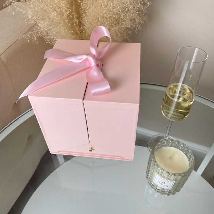 “Атлас☁️” – цветочная композиция с зефиром в деревянном ящике