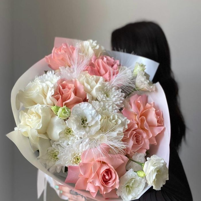 Альстромерии, Кустовые розы, Лизиантусы, Пионовидные розы, Розы, Ромашки