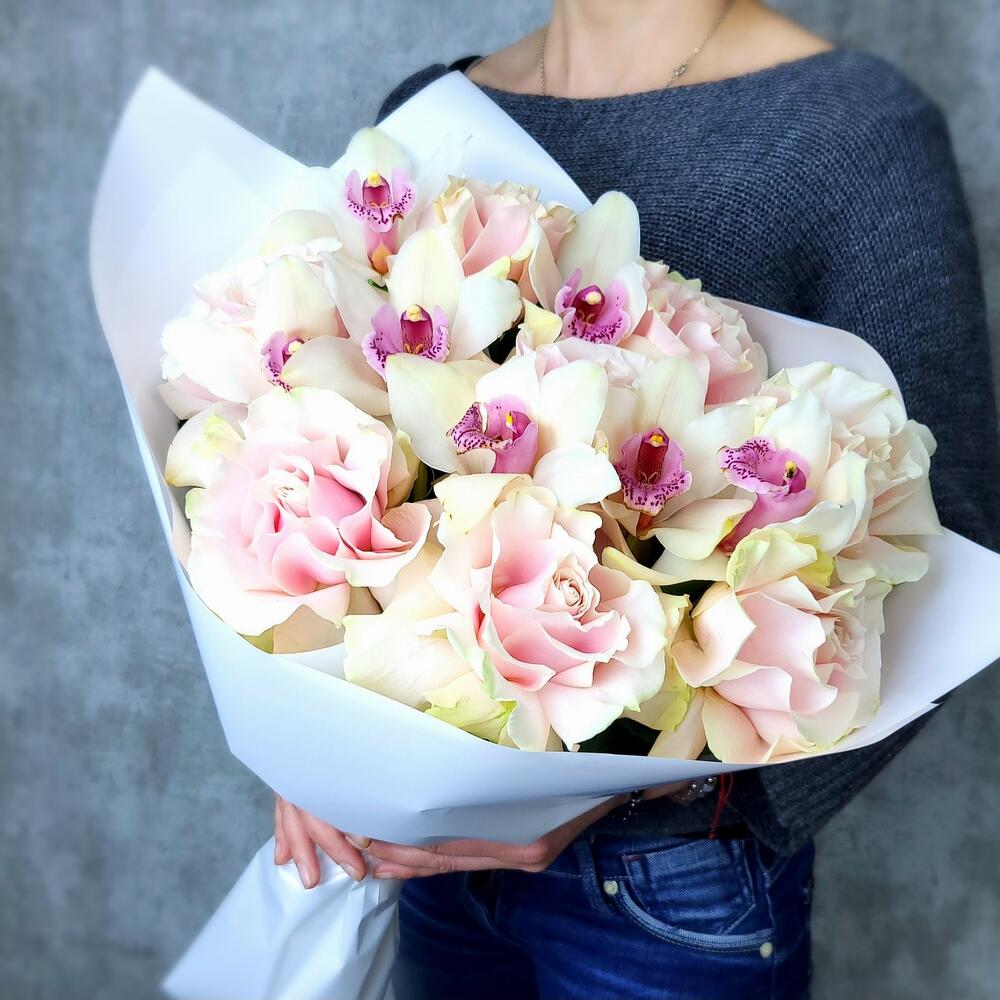 Гвоздики, Кустовые розы, Лизиантусы, Пионовидные розы, Розы