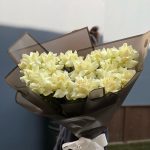 Бомбический букет из белых роз в стильном оформлении станет замечательным подарком для ваших близких