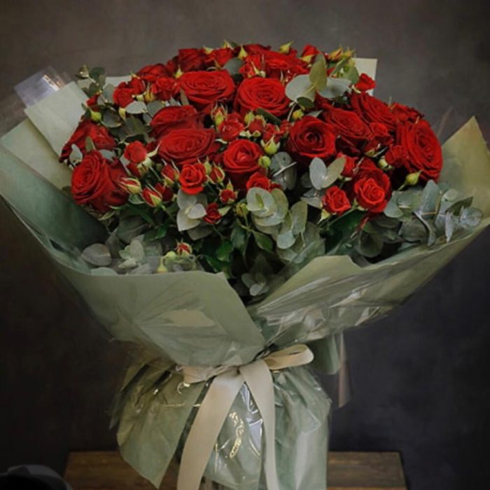 Роза кустовая – 9 шт. Роза Эквадор – 15 шт.