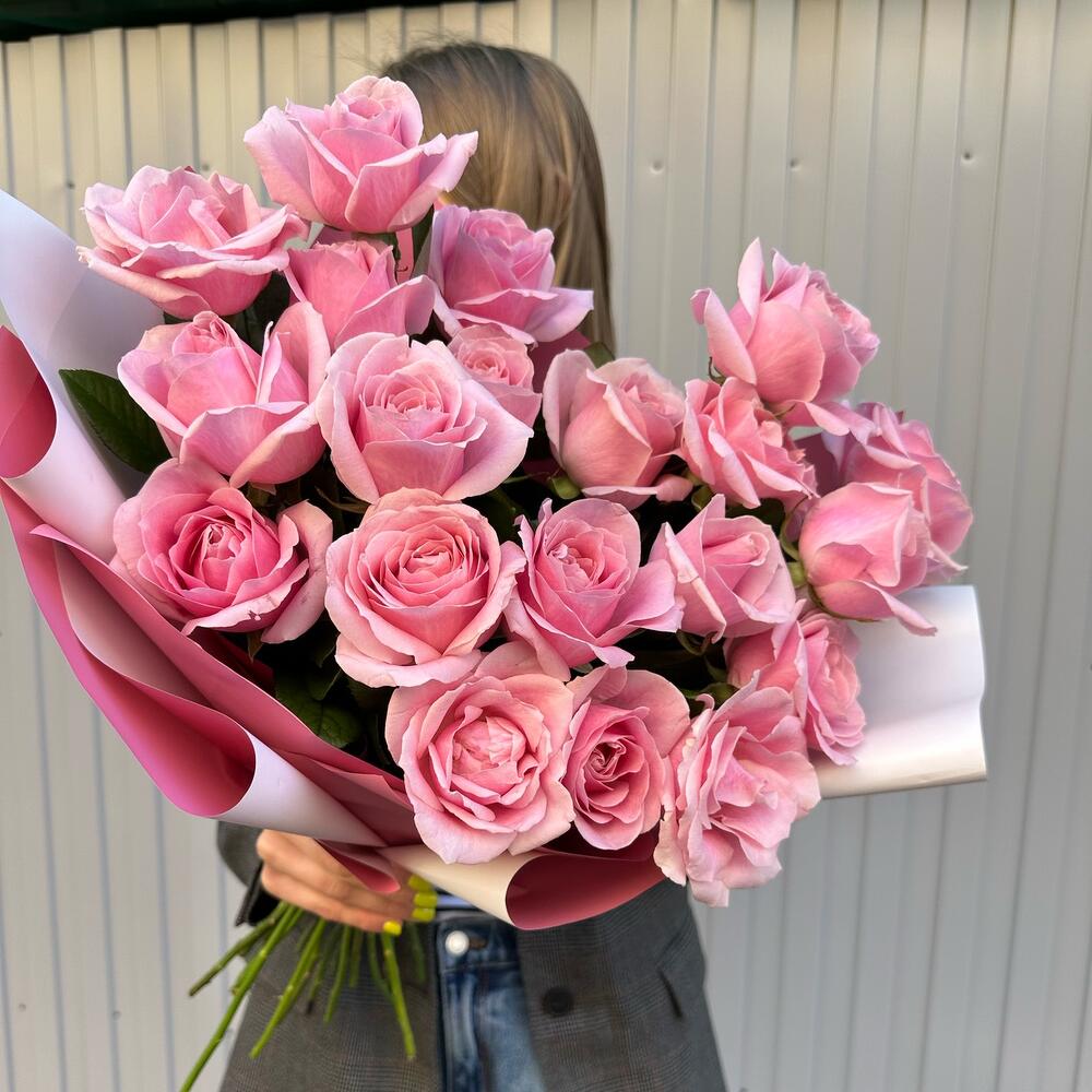 Объемный букет из 19 розовых роз