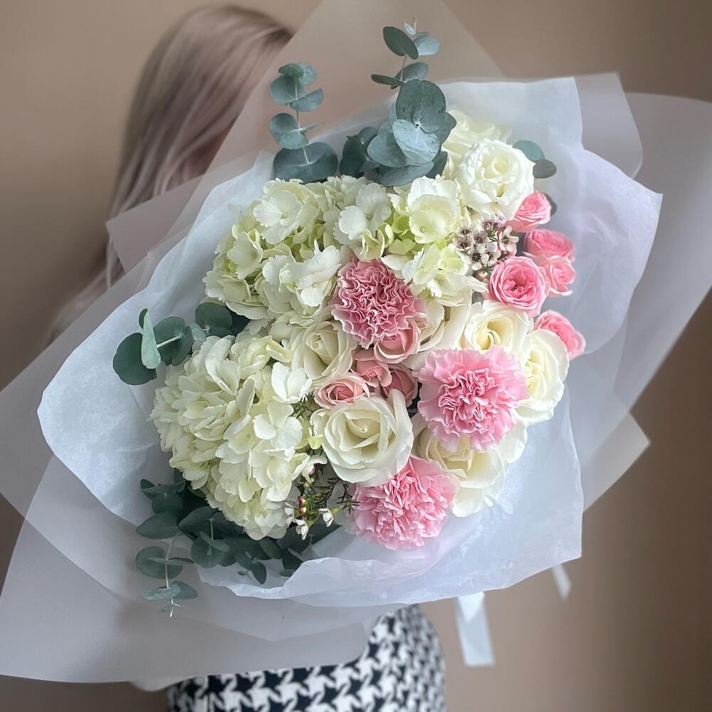 Гвоздики, Кустовые розы, Лизиантусы, Пионовидные розы, Розы