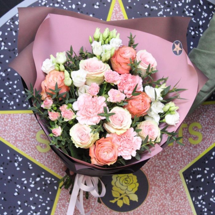 Категорий: Гвоздики, Кустовые розы, Лизиантусы, Пионовидные розы, Розы