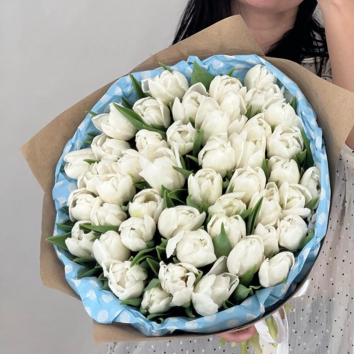 Лента – 2 шт.Упаковка – 2 шт.Белый пионовидный тюльпан – 49 шт.