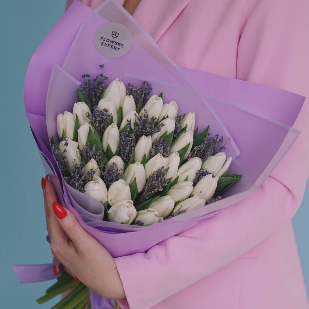 Тюльпан – 31 шт.Лаванда – 25 шт.Упаковка дизайнерская – 1 шт.
