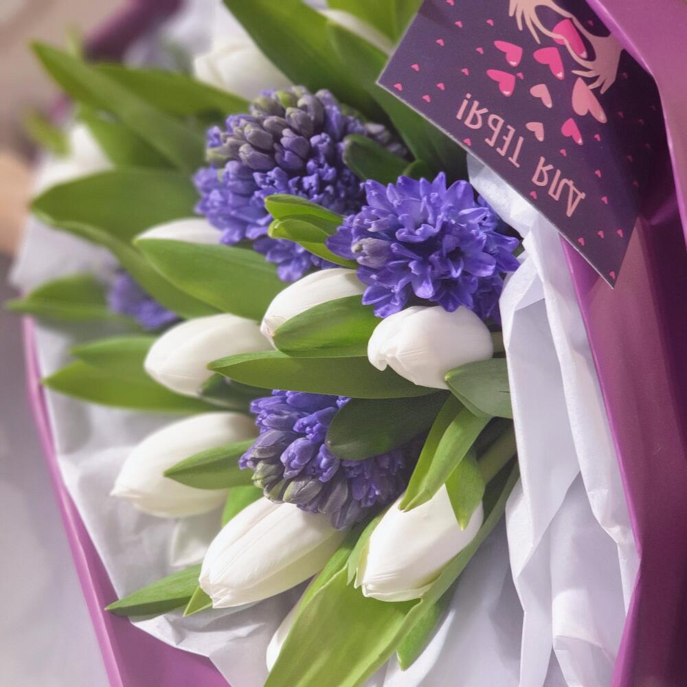 Белые тюльпаны с гиацинтами