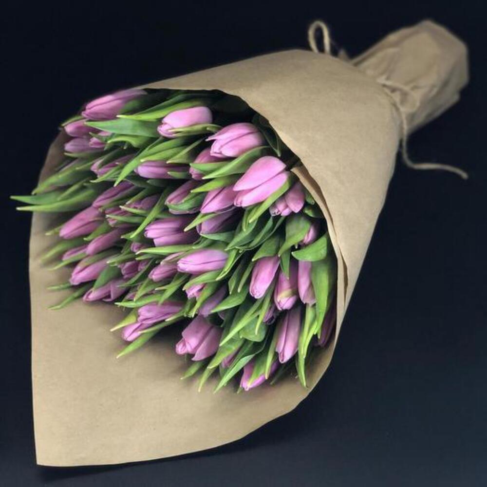 Сиреневые тюльпаны в крафте